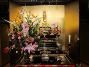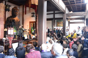 高福寺ではその年に永代経を納められた方の特別永代経を13:00よりおつとめし、その後全体でつとめる総永代経を14:00よりつとめております。お堂には今年永代経の方の法名板がご安置され、厳粛にお経がつとめられます。永代経を納めていらっしゃらない方もご自由におつとめ、お聴聞されます。